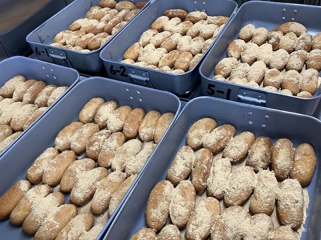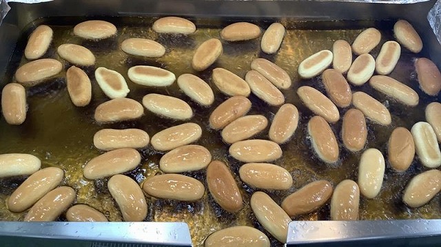 給食スタッフも、子どもたちの笑顔を思い浮かべながら、大きな釜でひとつひとつ丁寧に調理しました。外はカリッと、中はふわふわに仕上がった自慢のあげパン、みんなでおいしくいただきました。