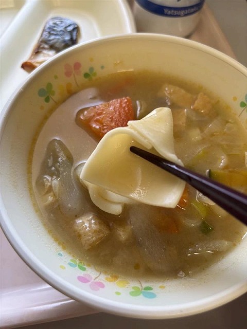 さらに今日の給食では、同じ身延町十谷地区に伝わる郷土料理の「みみ」も登場しました。