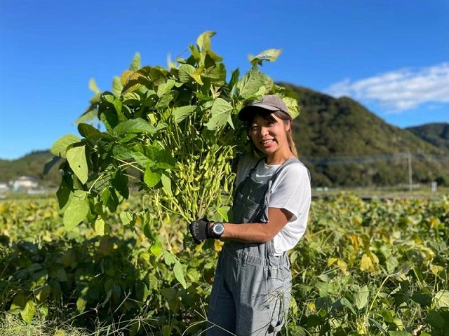 「今年は12月に収穫を迎えました。ここ数年の暑さや雨の少なさ、さらには鳥獣被害もあって、対策には本当に苦労しました。でも、その厳しい環境に耐え、土の中でじっくり、ゆっくり成長した分、驚くほど大粒で甘みが強い、食べ応えのある大豆になったんですよ。」