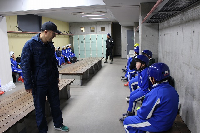 バスに乗って小瀬スポーツ公園のアイスアリーナへ行き、山梨県アイスホッケー連盟の方々のご指導のもと、練習を行いました。